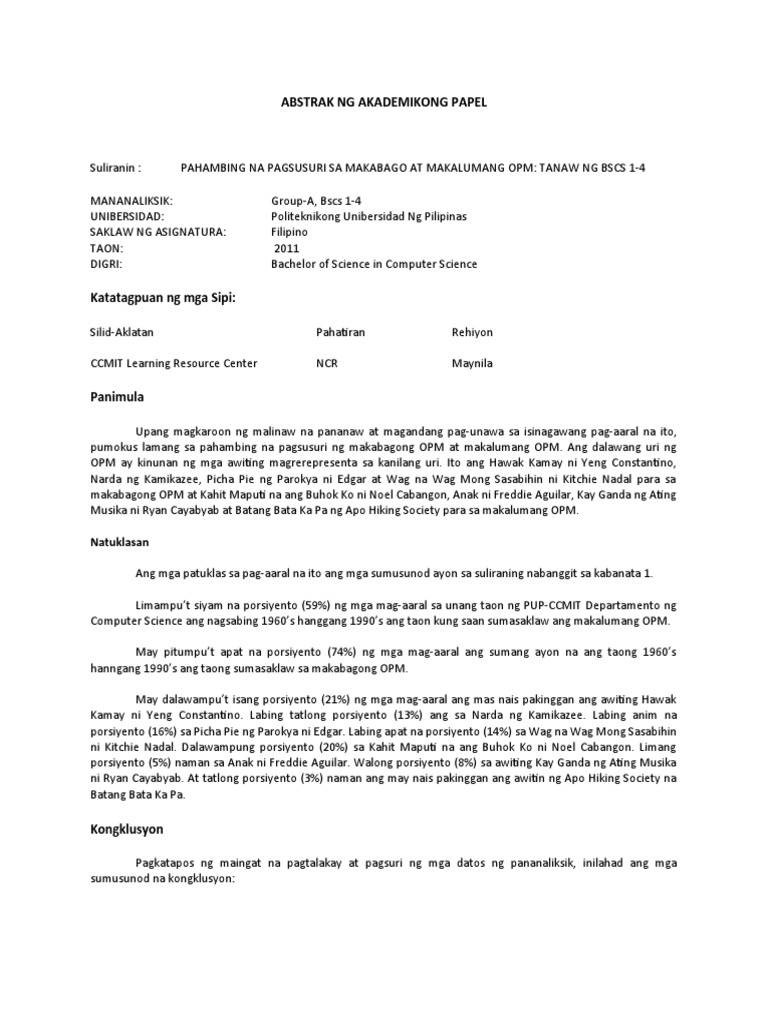 22012020 ABSTRAK Ito ay uri ng lagom na kadalasan ginagamit sa pagsusulat ng mga akademikong papel academic papers. Follow Report by Drewtreyes657 11122019 Log in to add a.