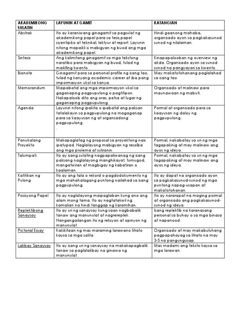 Masdan kung papaano nagbibigay ang abstrak ng isang maikling buod ng akademikong sulatin. DESKRIPSYON NG KURSO Pagsulat ng ibat ibang anyo ng sulating lilinang sa mga kakayahang magpahayag tungo sa mabisa mapanuri at masinop na pagsusulat sa piniling larangan 3. Ito ay ginagamit sa pagsulat ng akademikong papel para sa.