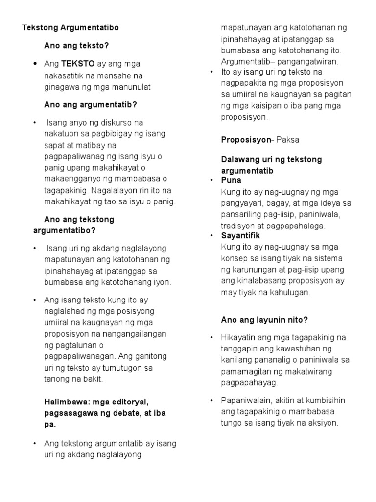 TEKSTONG ARGUMENTATIBO - Isang uri ng akdang naglalayong. Maraming genre para sa mga maiikling kwento. Dinadala ng may-akda ang mambabasa sa ibat ibang lugar sa ibat ibang panahon kung saan at kailan nagaganap ang mga pangyayari.