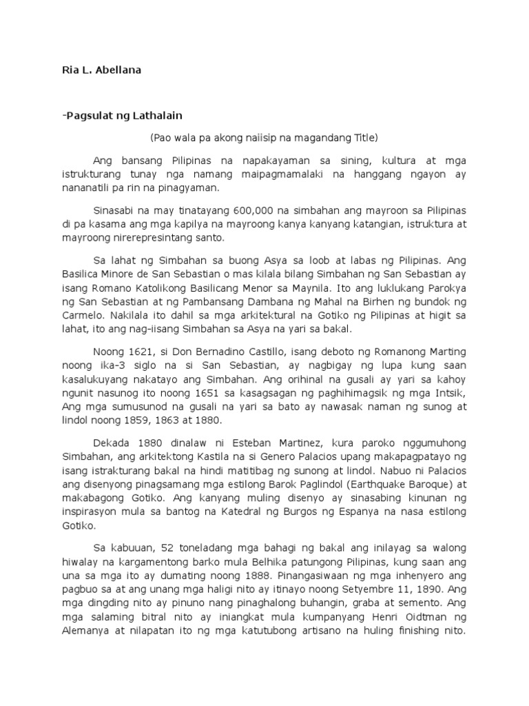 Talata may diin at kagandahan. Hindi mabulaklak hindi sentimntal hindi maligoy. Pagsulat-ng-lathalainpdf - Free download as PDF File pdf Text File txt or read online for free.