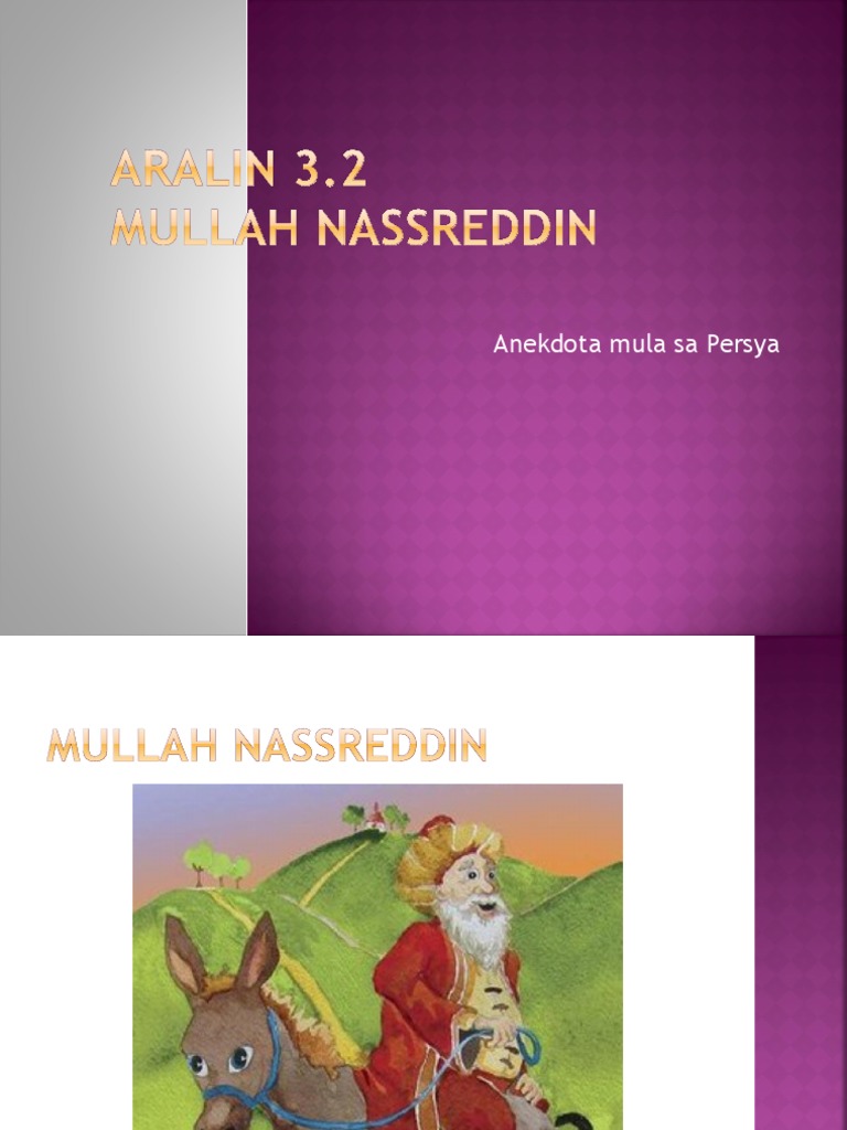 Reroma BSEd-3 Pagsulat 2. 17112015 Ang akdang Mulla Nassreddin ay sinimulan sa pamamagitan ng pagpapakilala sa kanya. Z Naimbitahan si Mullah Nassreddin upang magbigay ng isang talumpati sa harap ng.