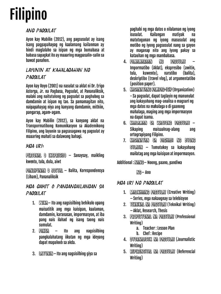 Sa isang mag-aaral ginagawa niya ang pagsulat sapagkat ito ay bahagi ng kanyang pangangailangan sa paaralan upang siya ay makapasa. Quickly memorize the terms phrases and much more. Paksa -Dapat magkaroon ng isang tiyak na paksa o tema ang isusulat.